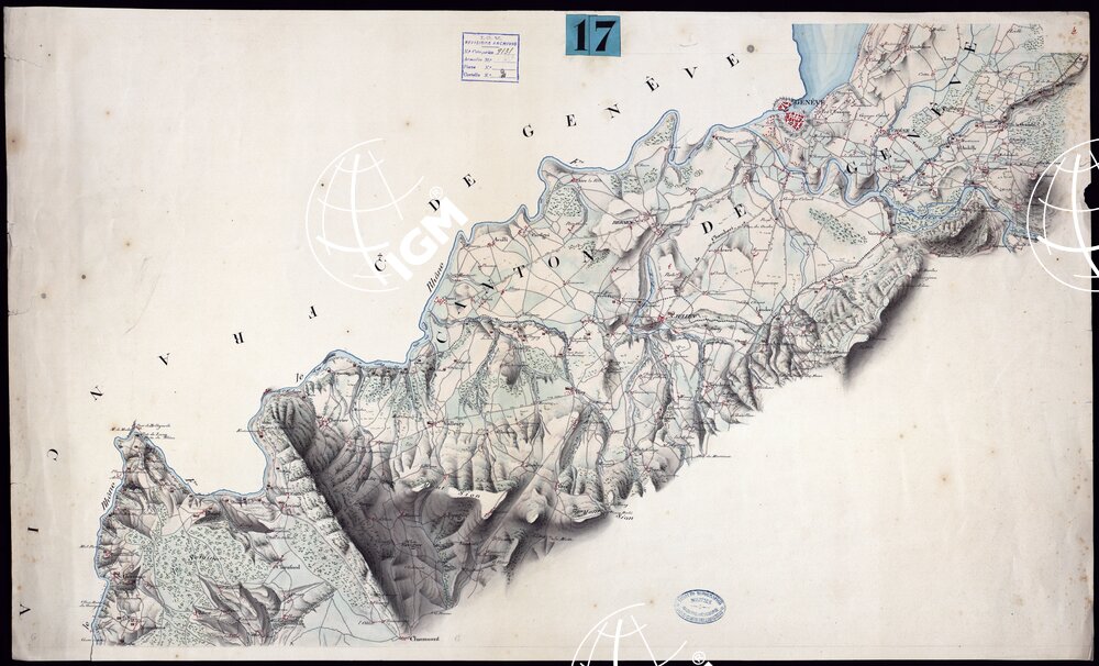 Otto fogli di diverse dimensioni, più due quadri d’unione, rappresentanti una zona lungo la linea di frontiera, per una larghezza variabile tra i 4 e i 10 km. Disegno a penna accuratissimo a più colori, acquerellato per la rappresentazione orografica con molta efficacia artistica. Confrontati con i fogli corrispondenti della Carta degli Stati Sardi al 50.000, si mostrano più ricchi d’indicazioni topografiche e toponomastiche. Segni convenzionali speciali indicanti i Corpi di guardia e i distaccamenti della 1a e 2a linea per le truppe del Cordone Sanitario. Non portano indicazione di autore; ma una registrazione d’Archivio dice che per tradizione di ufficio sono attribuiti al Brambilla.