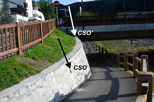 [{"simbolo_contrassegno":"B1","materializzazione":"(CSO) – Bullone infisso nel muro di contenimento della strada pedonale che costeggia il Rio Gadera."},{"simbolo_contrassegno":"B4","materializzazione":"(CSO') – Centrino universale infisso sul muro di contenimento della strada pedonale che costeggia il Rio Gadera ed in prossimit\u00e0 del CSO."}]