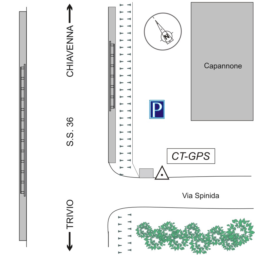 Centrino in acciaio inox del tipo "universale", infisso sul cordolo in calcestruzzo della strada all'incrocio tra via Spinida e la S.S. 36.