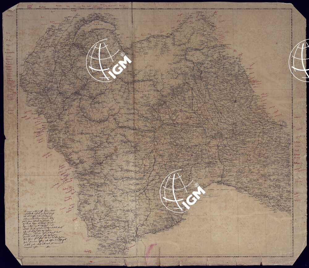 Disegno a penna limitato alla sola planimetria e toponomastica, che servì di minuta per la formazione della corrispondente carta incisa su rame e pubblicata dall’Ufficio Topografico dello Stato Maggiore nel 1846.