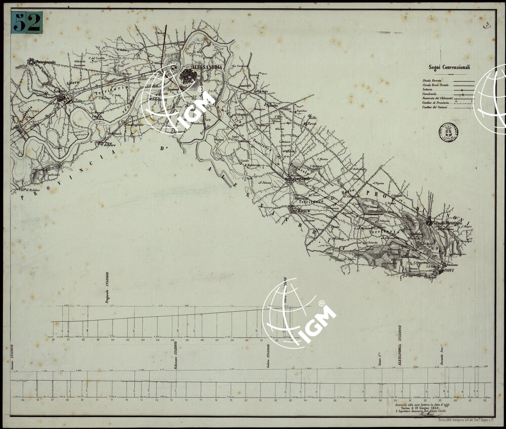 STRADA FERRATA DA GENOVA A TORINO PIANO DELLA LINEA DA NOVI A GENOVA INDICANTE 1°IL NUMERO, 2° LE STAZIONI E FERMATE 3° IL LIMITI DEI TERRERRITO ATTRAVERSATI 4° IL MODO IN CUI SI ATTRAVERSANO LE COMUNICAZIONI ESISTENTI ED I CORSI D’ACQUA.