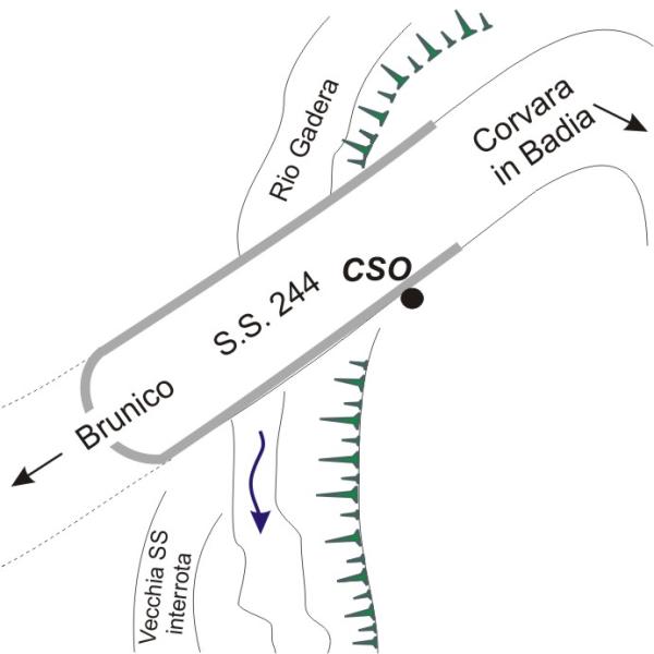 | Contrassegni | [{"simbolo_contrassegno":"B1","materializzazione":"(CSO) – Bullone infisso nella trave del viadotto, a sinistra prima di entrare nella galleria, in direzione Brunico."}] |