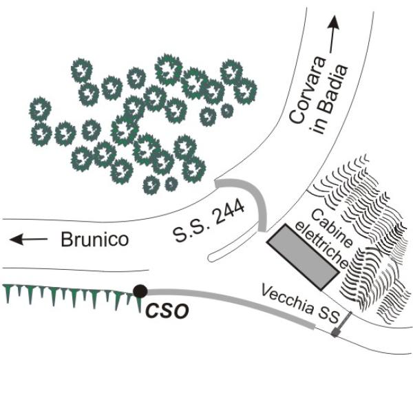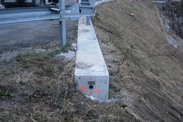 [{"simbolo_contrassegno":"B1","materializzazione":"(CSO) – Bullone infisso nella testa del muro del guard rail che si trova prima del portale nord della galleria di Pedraces."}]
