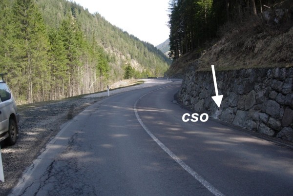 [{"simbolo_contrassegno":"B1","materializzazione":"(CSO) – Bullone infisso nel muro in sassi che si trova a monte della strada."}]