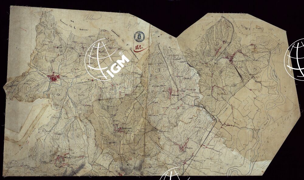 Gruppo di 142 minute di campagna, e un quadro d’unione, in fogli irregolari, alcuni con degli spezzoni allegati, montati su tela. L’orografia vi è rappresentata variamente talvolta con curve dimostrative e tratteggio, oppure con sfumo a luce obliqua e tratteggio o con sfumo e curve dimostrative. Gli abitati sono colorati in rosso; le acque in azzurro.