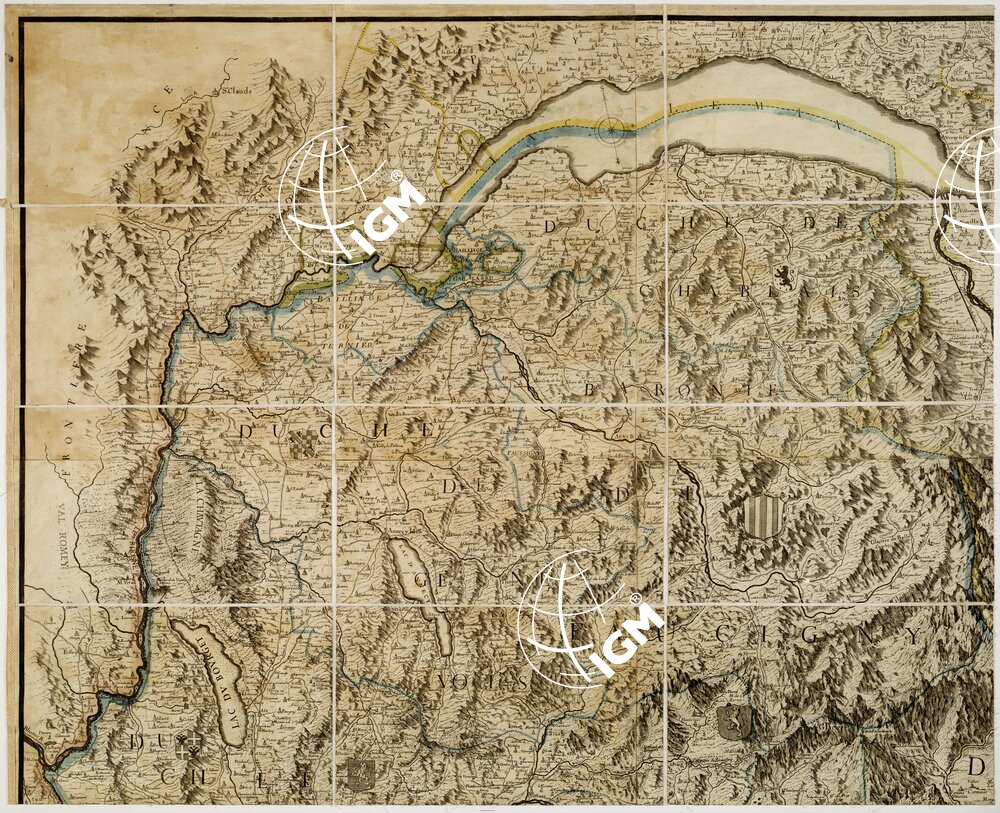 Nuova edizione della così detta “Carta di Madama Reale” costruita dall’ingegnere cartografo G. T. Borgonio disegnatore e calligrafo, addetto fin dal 1650 alla corte Sabauda, e pubblicata nel 1680 in 15 fogli incisi su rame. La carta del Borgonio rappresenta un grande progresso nella cartografia del Piemonte essendo essa di gran lunga superiore alle precedenti produzioni cartografiche di quella regione. Per quanto non poggiata su una vera e propria base geometrica, sì da doverne accusare l’inesattezza nell’orientamento e nella misura delle distanze, essa nondimeno è particolarmente pregevole sia per la ricchezza di informazioni relative agli abitati, strade, corsi d’acqua, sia per la rappresentazione dell’orografia efficacemente dimostrata alla cavaliera. La carta del Borgonio rimase famosa ed apprezzata per circa un secolo e mezzo: ad essa si ispirarono successivi cartografi come il Coronelli, De Fer, Mortier, R. de Vaugondy. Divenuta rarissima se ne pubblicarono nuove edizioni una delle quali a Londra nel 1765 a cura di A. Dury, e l’altra a Torino nel 1772 a cura dell’incisore piemontese Stagnone tratta dagli stessi rami del Borgonio ma corretti ed arricchiti, e con l’aggiunta di nuovi sì da estendere la carta alla Liguria e a parte della Lombardia.