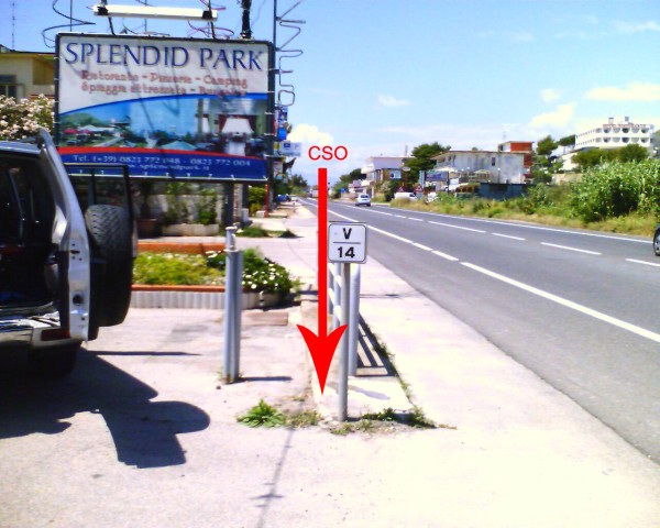 | Contrassegni | [{"simbolo_contrassegno":"B4","materializzazione":"(CSO) – Centrino universale infisso sulla spalletta del ponticello posto al km 14,500 della SS 7 quater difronte all'hotel Splendit Park."}] |