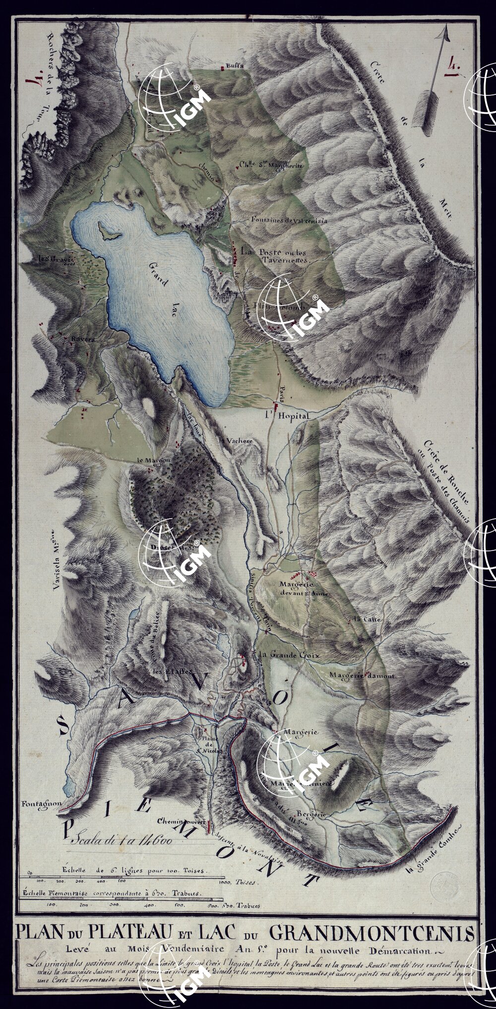 | Titolo proprio | PLAN DU PLATEAU ET LAC DU GRAND MONTCENIS LEVE' AU MOIS VENDEMIAIRE AN 5° POUR LA NOUVELLE DEMARCATION. |