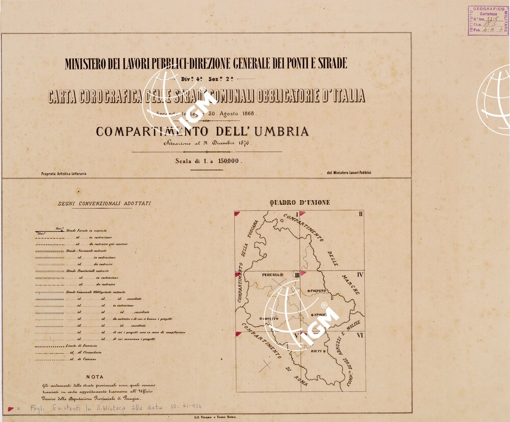 CARTA COROGRAFICA DELLE STRADE COMUNALI OBBLIGATORIE D’ITALIA – COMPARTIMENTO DELL’UMBRIA… – Quadro d’unione