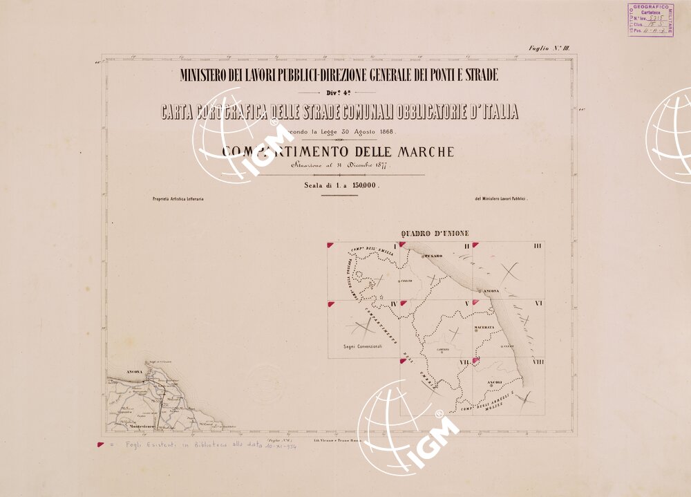 CARTA COROGRAFICA DELLE STRADE COMUNALI OBBLIGATORIE D’ITALIA – COMPARTIMENTO DELLE MARCHE… – Foglio 3