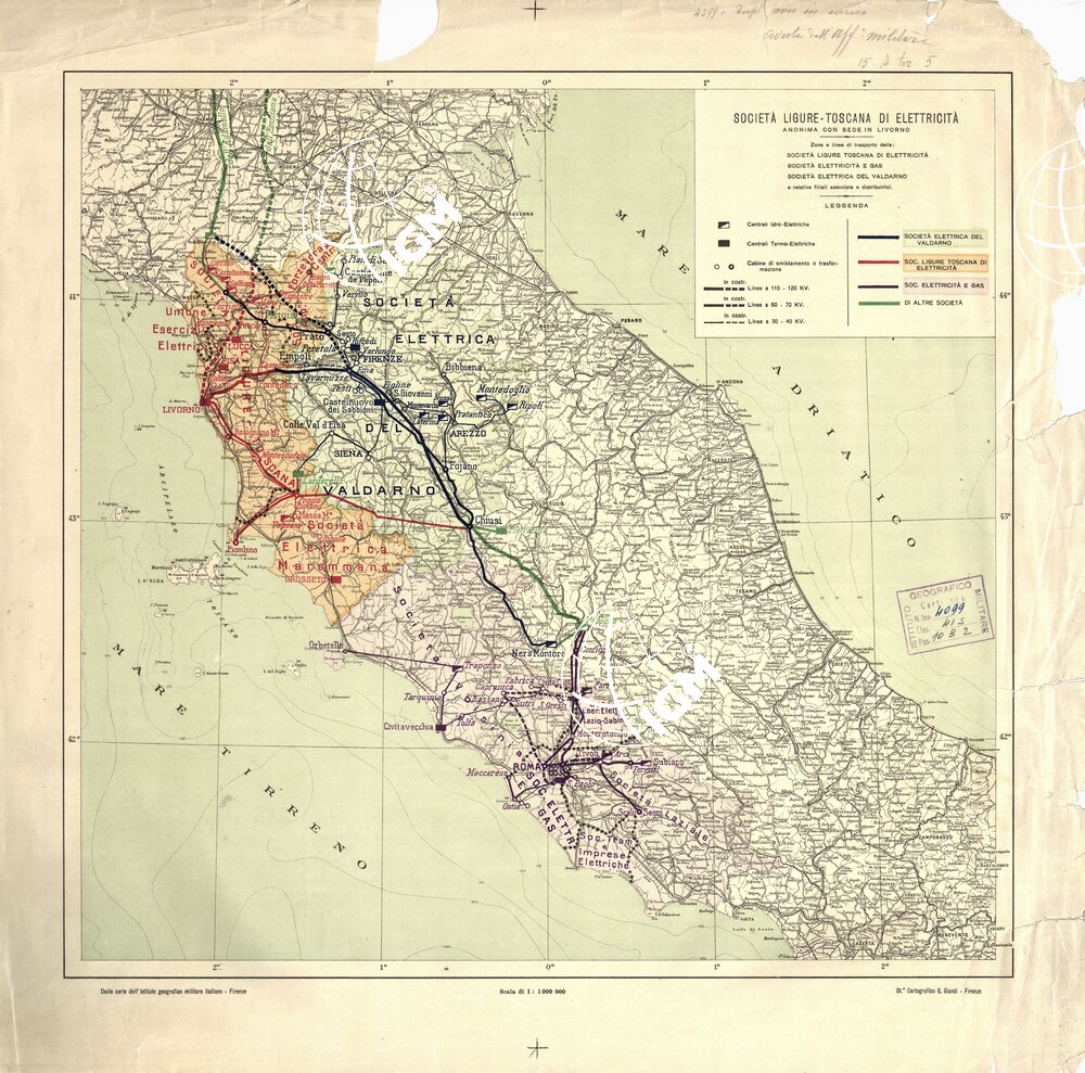 Zone e linee di trasporto delle: Società Ligure Toscana di Elettricità, Società Elettricità e Gas, Società Elettrica del Valdarno e relative filiali associate e distributrici.