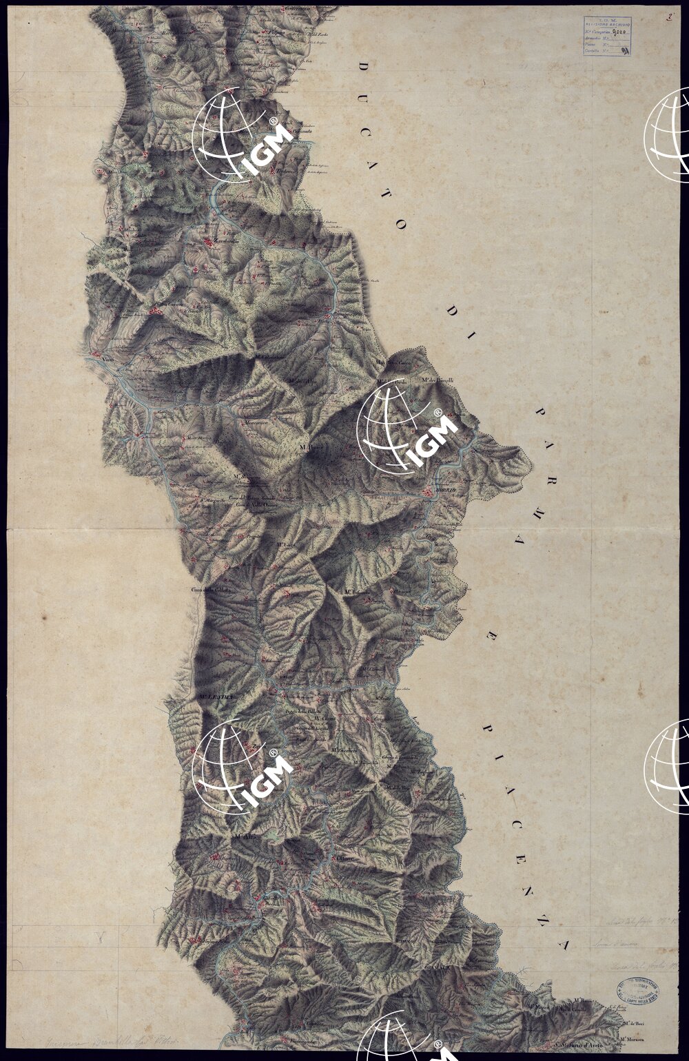 Sono tre fogli artisticamente acquerellati a luce obliqua attribuiti all’Ing. Topografo Vittorio Brambilla. La carta fu eseguita per collocare i posti del Cordone Sanitario tra il Piemonte e i Ducati durante l’epidemia colerica del 1831. Al N° 31 d’ordine del gruppo Savoia si veda per i rimanenti fogli che comprendano la zona di frontiera tra il M. Tabor e la Balma.
