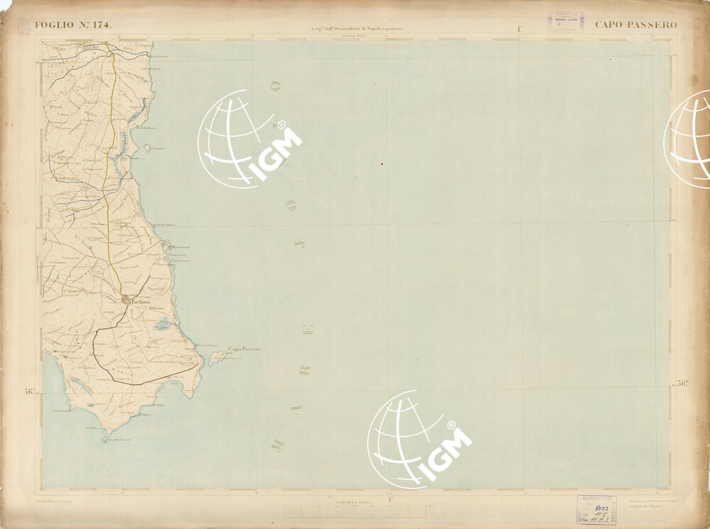 CARTA DELL'ISOLA DI SICILIA – Foglio 174 – Capo Passero
