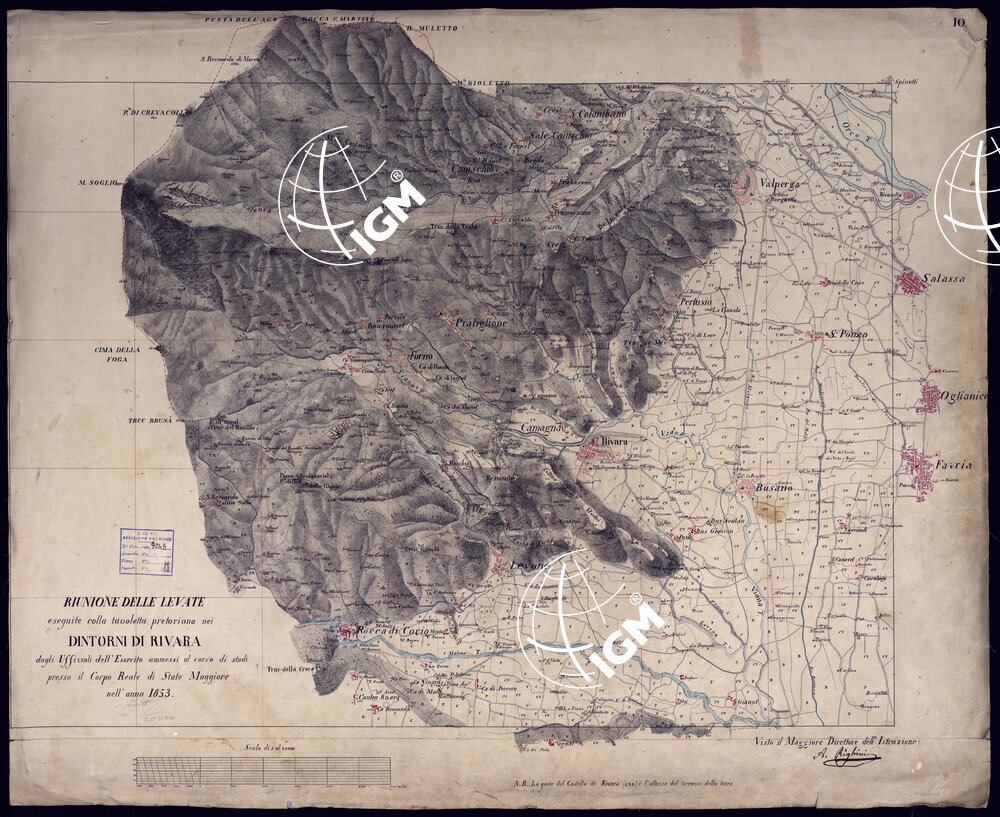 RIUNIONE DELLE LEVATE ESEGUITE COLLA TAVOLETTA PRETORIANA NEI DINTORNI DI RIVARA DAGLI UFFICIALI DELL' ESERCITO AMMESSI AL CORSO DI STUDI PRESSO IL CORPO REALE DI STATO MAGGIORE NELL'ANNO 1853.