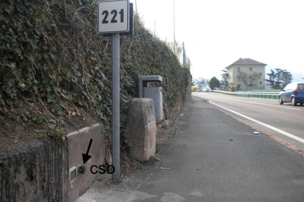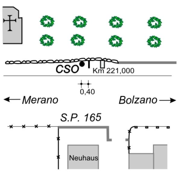 | Contrassegni | [{"simbolo_contrassegno":"B1","materializzazione":"(CSO) – Bullone infisso nel muro in cemento armato in prossimit\u00e0 della chilometrica 221."}] |