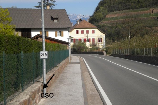 [{"simbolo_contrassegno":"B1","materializzazione":"(CSO) – Bullone infisso nel muro in pietra a sinistra della strada andando verso Merano, in prossimit\u00e0 della chilometrica 219."}]