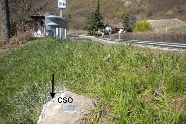 [{"simbolo_contrassegno":"B4","materializzazione":"(CSO) – Centrino universale Inox infisso sulla sommit\u00e0 di un grosso masso affiorante, a valle della strada, in prossimit\u00e0 della chilometrica 216."}]
