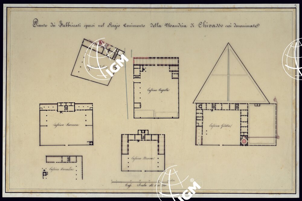 | Titolo proprio | PIANTE DEI FABBRICATI SPARSI NEL REGIO TENIMENTO DELLA MANDRIA DI CHIVASSO COSI' DENOMINATE. |
