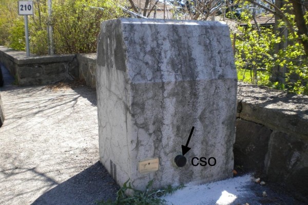 [{"simbolo_contrassegno":"B1","materializzazione":"(CSO) – Bullone infisso nella vecchia pietra chilometrica 210, in prossimit\u00e0 della chiesa."}]