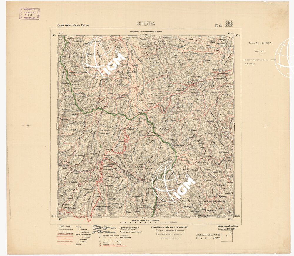 CARTA DELLA COLONIA ERITREA CON L'INDICAZIONE E COLORI DELLE CIRCOSCRIZIONI – Foglio 12 – GHINDA
