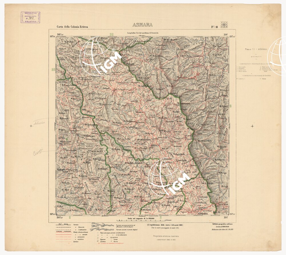 CARTA DELLA COLONIA ERITREA CON L’INDICAZIONE E COLORI DELLE CIRCOSCRIZIONI – Foglio 11 – ASMARA