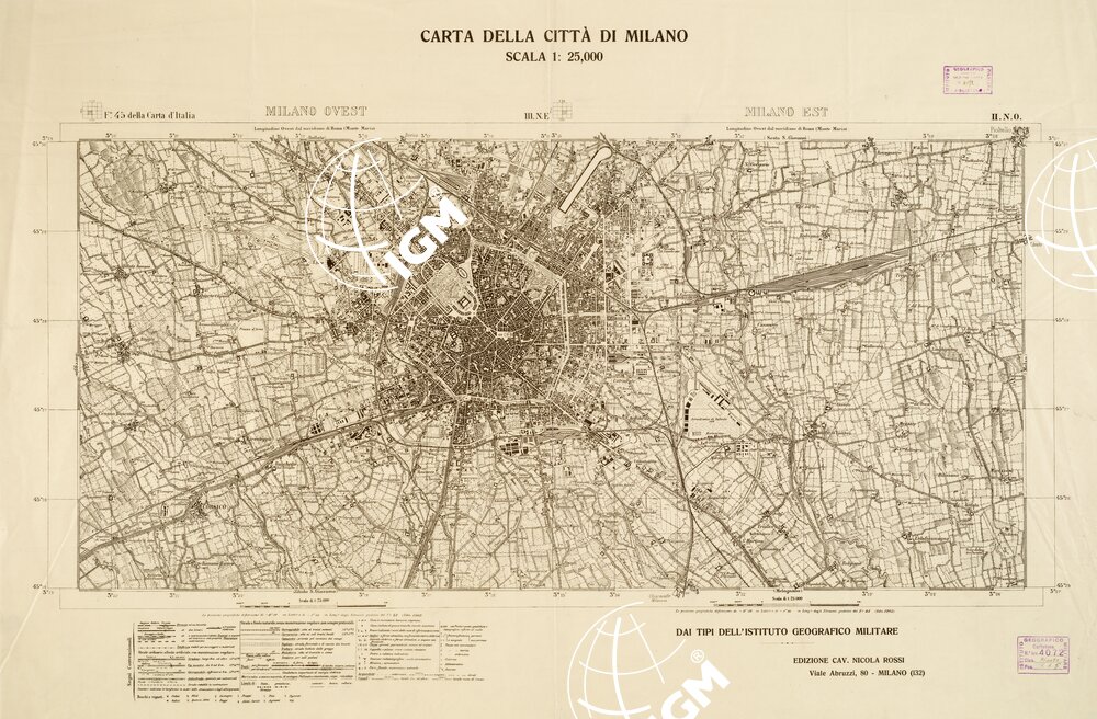 | Titolo proprio | CARTA DELLA CITTA' DI MILANO EDIZ. CAV. NICOLA ROSSI. MILANO. DAI TIPI DELL' IST. GEOGR. MILIT. |