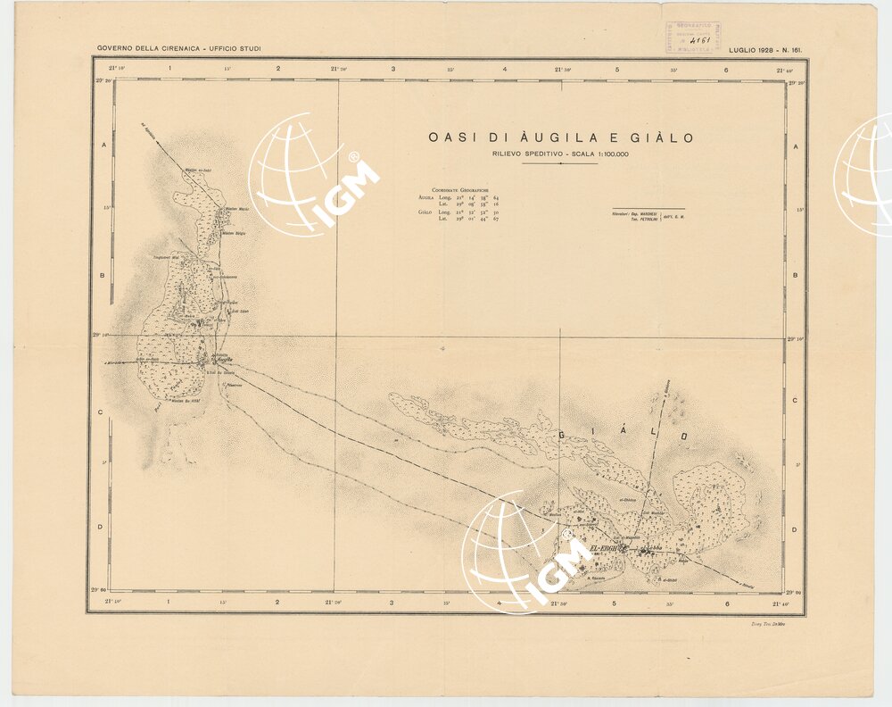 CARTA DELLA CIRENAICA – OASI DI AUGILA E GIALO – LUGLIO 1928 N. 161