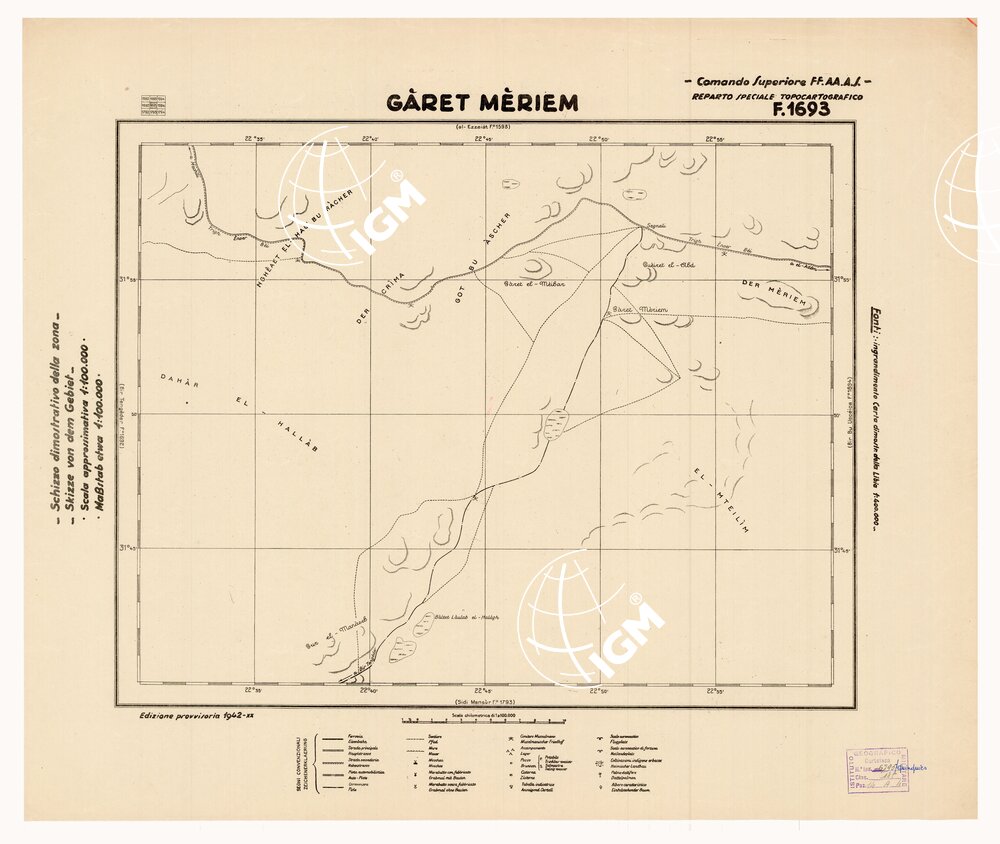 CARTA DELLA CIRENAICA :SUD DEL BENGASI – SIRTICA – CIRENAICA CENTRO ORIENTALE – GARET MERIEM F 1693