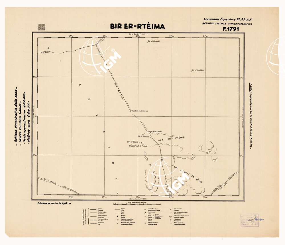 CARTA DELLA CIRENAICA :SUD DEL BENGASI – SIRTICA – CIRENAICA CENTRO ORIENTALE – BIR ER RTEIMA F 1791