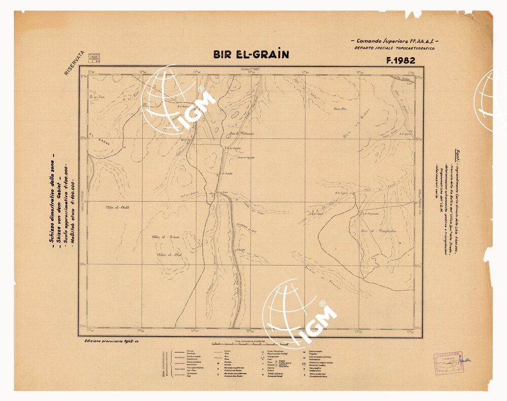 CARTA DELLA CIRENAICA :SUD DEL BENGASI – SIRTICA – CIRENAICA CENTRO ORIENTALE – BIR EL-GRAIN F 1982