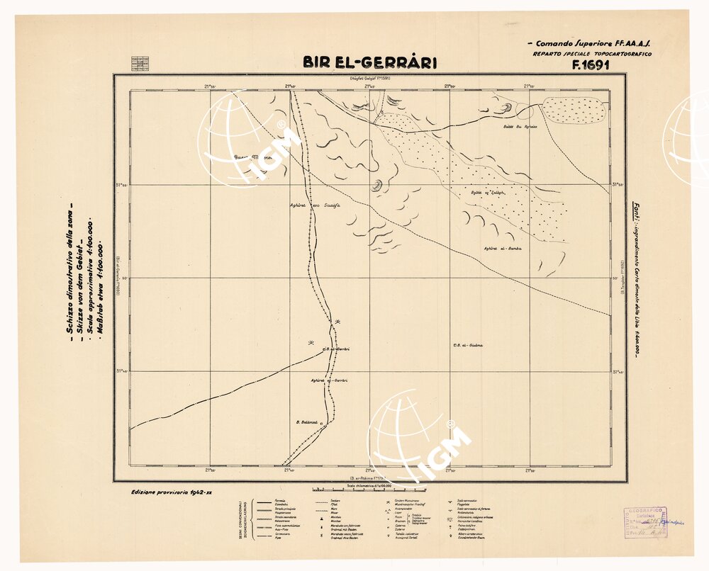 CARTA DELLA CIRENAICA :SUD DEL BENGASI – SIRTICA – CIRENAICA CENTRO ORIENTALE – BIR EL-GERRARI F 1691