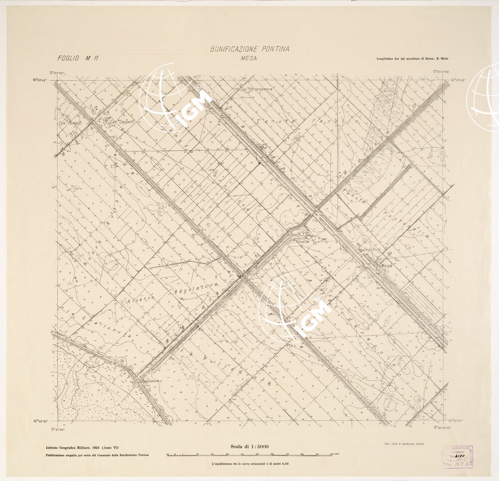 | Titolo proprio | CARTA DELLA BONIFICAZIONE PONTINA E DELLA BONIFICA DI PISCINARA – Foglio M11 – Mesa |