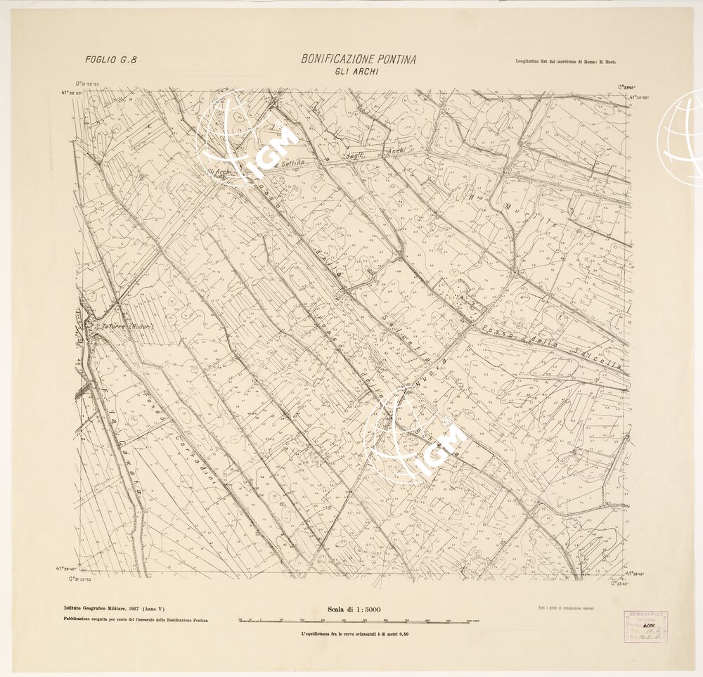 | Titolo proprio | CARTA DELLA BONIFICAZIONE PONTINA E DELLA BONIFICA DI PISCINARA – Foglio G8 – Gli Archi |