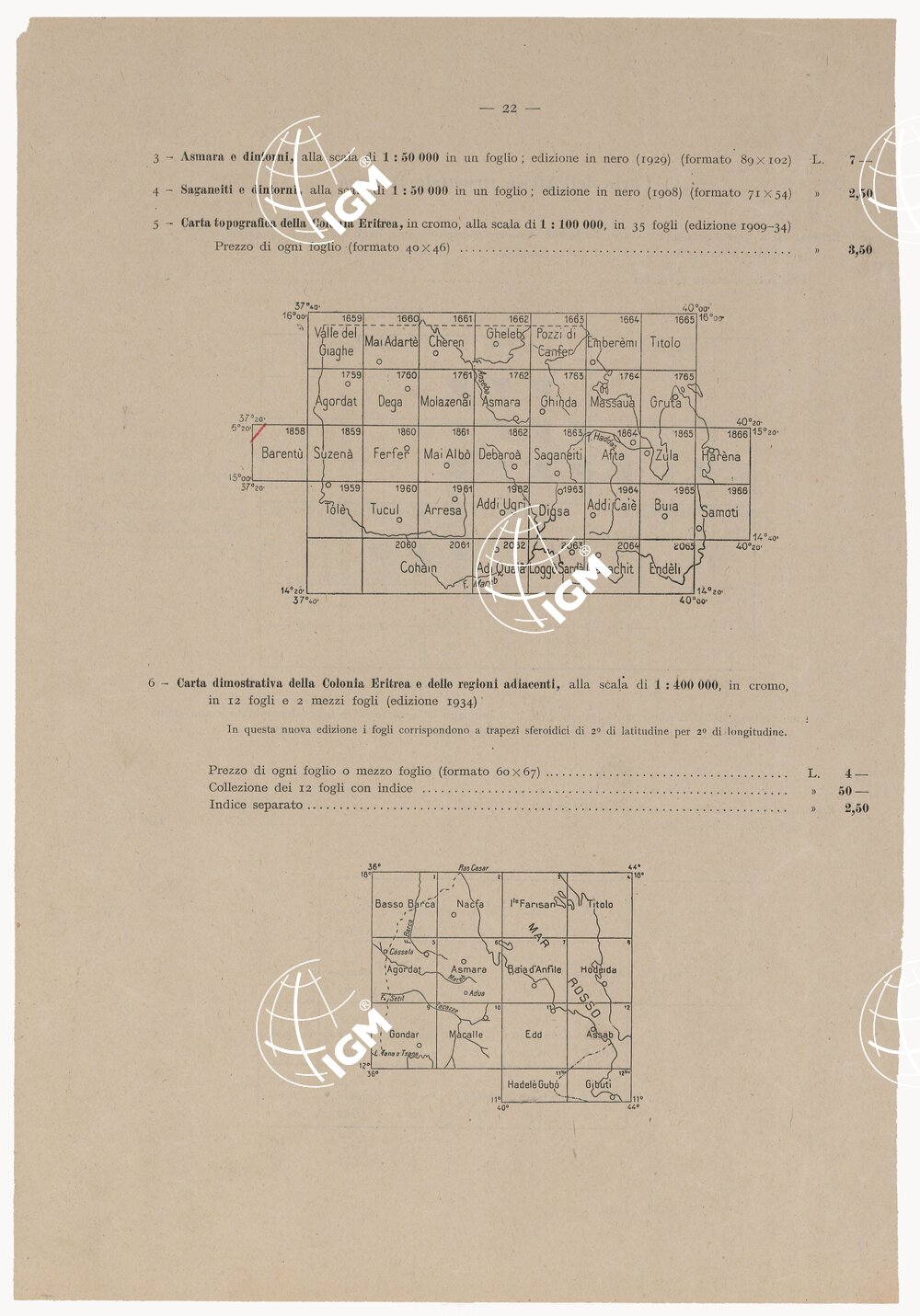 Quadro d’unione della carta dell’Eritrea in fronte retro.