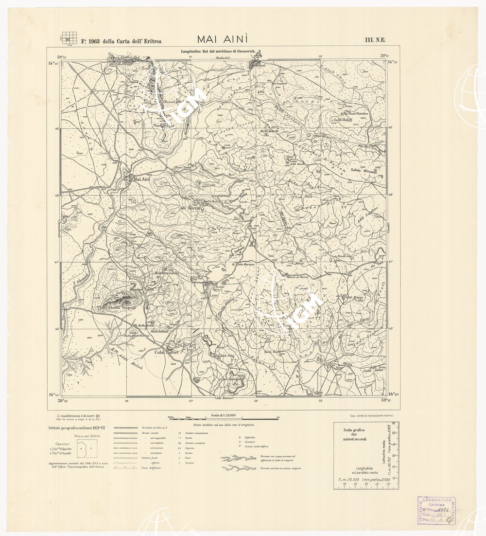 CARTA DELL'ERITREA – Foglio 1963 III N.E. – Mai Ainì