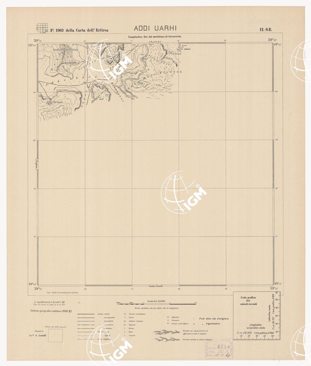 | Titolo proprio | CARTA DELL'ERITREA – Foglio 1963 II S.E. – Addi Uarhi |