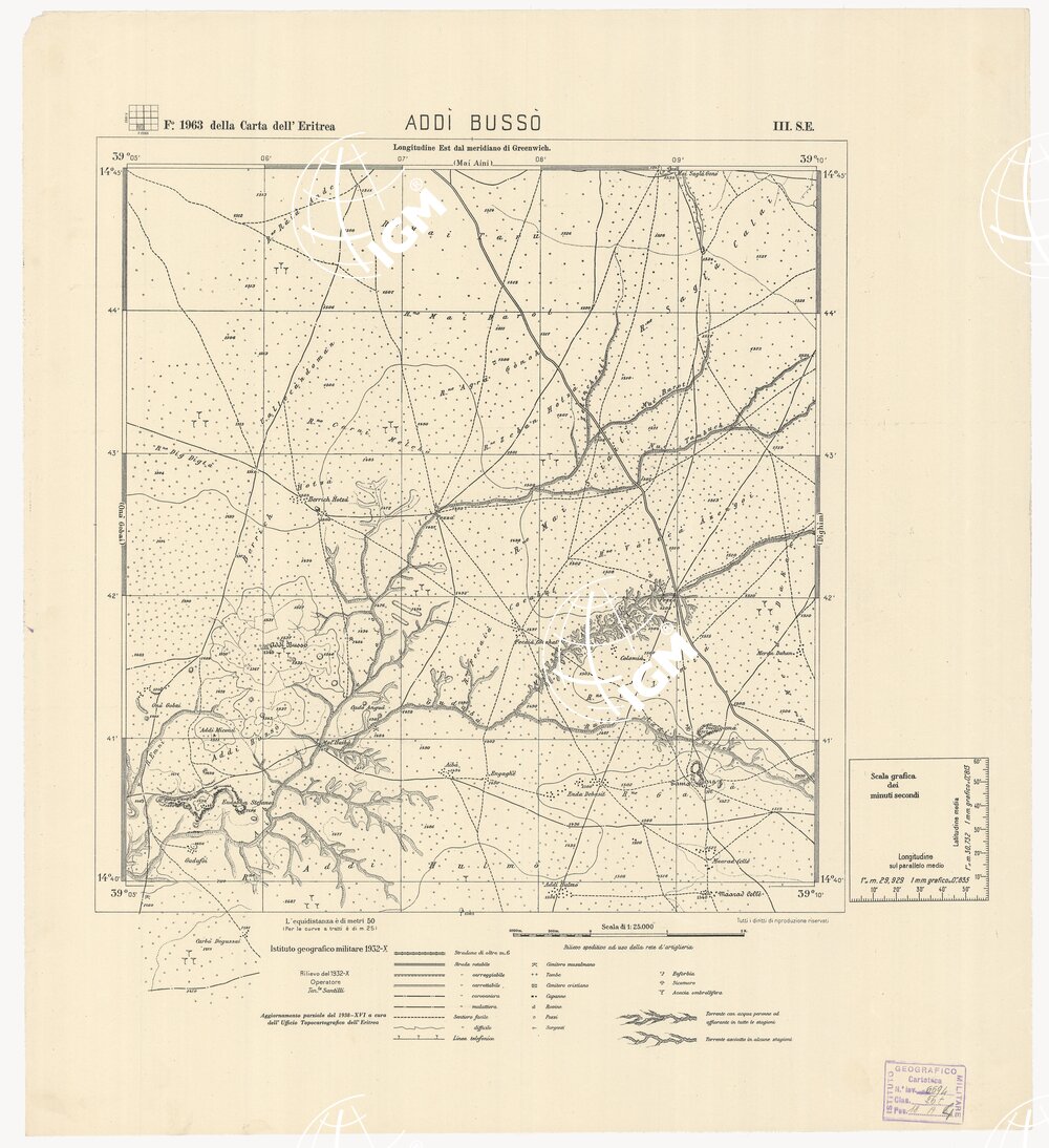 | Titolo proprio | CARTA DELL'ERITREA – Foglio 1963 III S.E. – Addì Bussò |