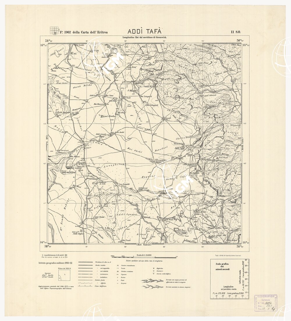 | Titolo proprio | CARTA DELL'ERITREA – Foglio 1962 II S.O. – Addì Tafà |