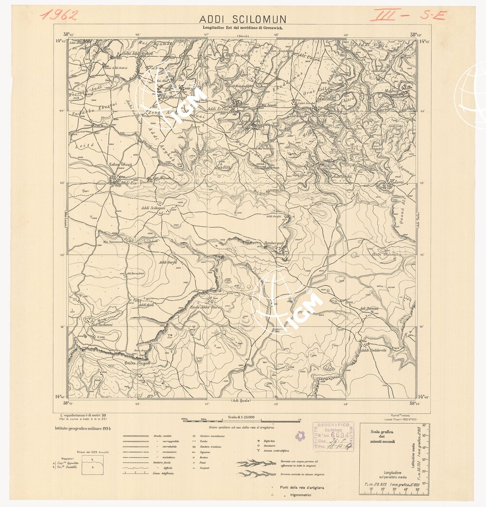 CARTA DELL'ERITREA – Foglio 1962 III S.E. – Addi Scilomun