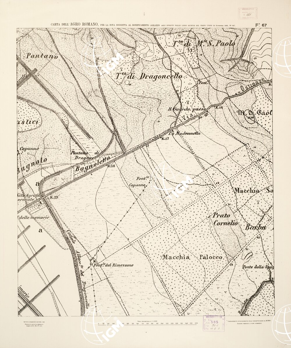 …NEL RAPPORTO DI 1:8.000 PER LA ZONA SOGGETTA AL BONIFICAMENTO AGRARIO AGLI EFFETTI DELLE LEGGI RIUNITE IN TESTO UNICO CON R. D. NOVEMBRE 1905 N° 647. I.G.M., 1904.