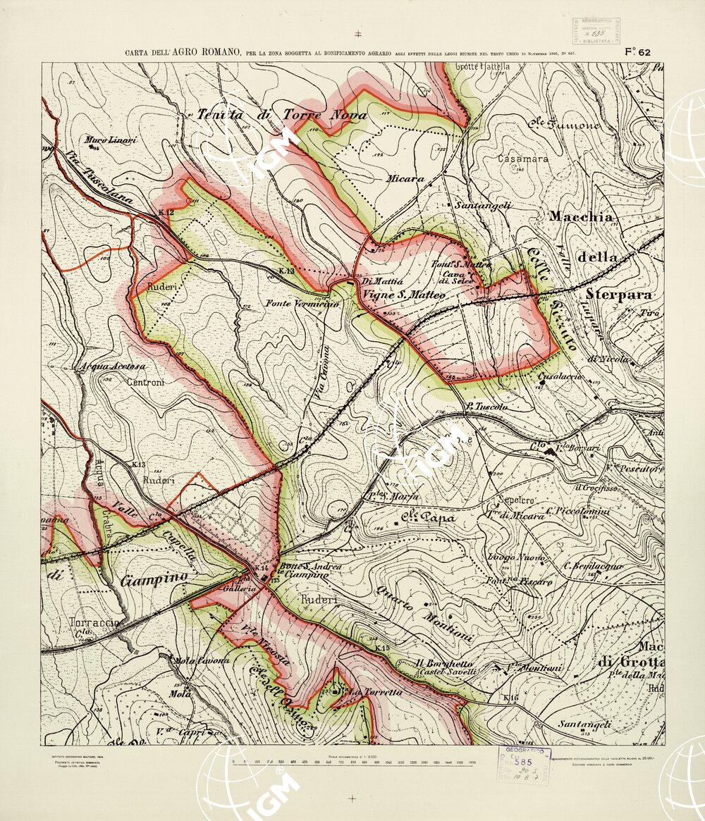 …NEL RAPPORTO DI 1:8.000 PER LA ZONA SOGGETTA AL BONIFICAMENTO AGRARIO AGLI EFFETTI DELLE LEGGI RIUNITE IN TESTO UNICO CON R. D. NOVEMBRE 1905 N° 647. I.G.M., 1904.