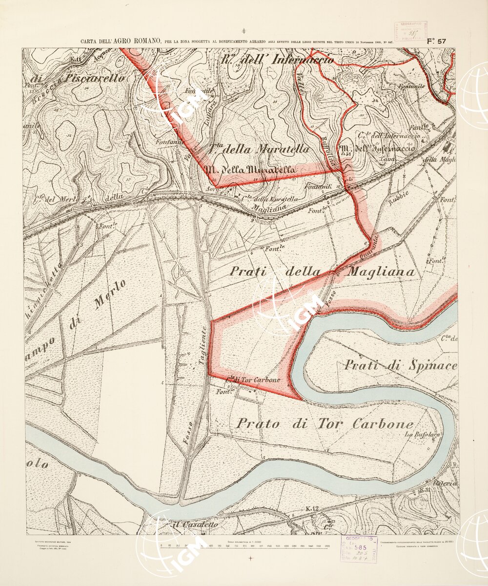 …NEL RAPPORTO DI 1:8.000 PER LA ZONA SOGGETTA AL BONIFICAMENTO AGRARIO AGLI EFFETTI DELLE LEGGI RIUNITE IN TESTO UNICO CON R. D. NOVEMBRE 1905 N° 647. I.G.M., 1904.