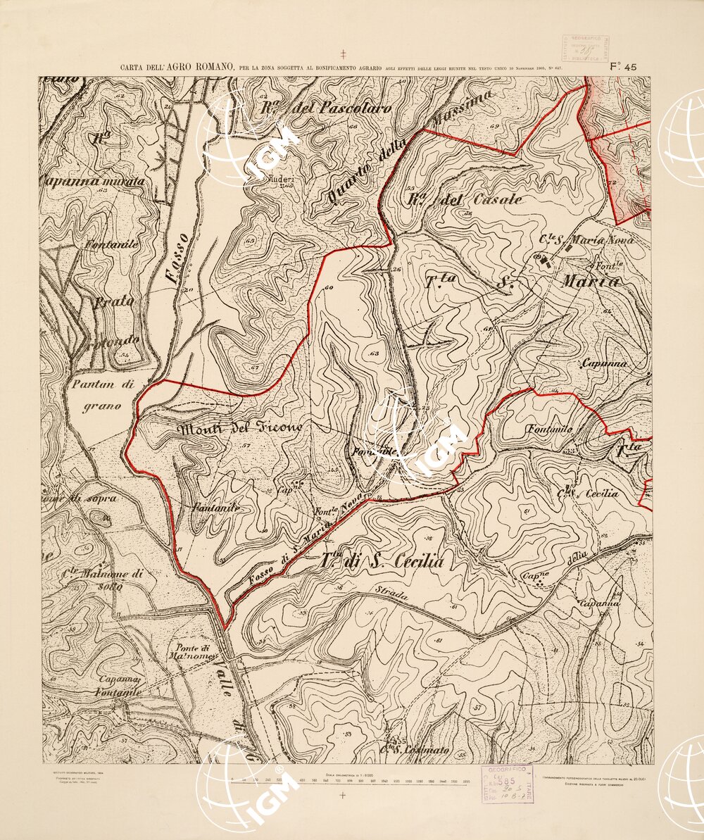 …NEL RAPPORTO DI 1:8.000 PER LA ZONA SOGGETTA AL BONIFICAMENTO AGRARIO AGLI EFFETTI DELLE LEGGI RIUNITE IN TESTO UNICO CON R. D. NOVEMBRE 1905 N° 647. I.G.M., 1904.
