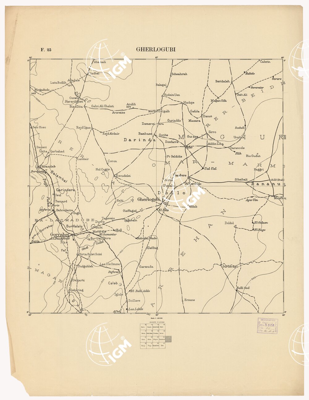 CARTA DELL'AFRICA ORIENTALE ITALIANA – Foglio 25 – Gherlogubi