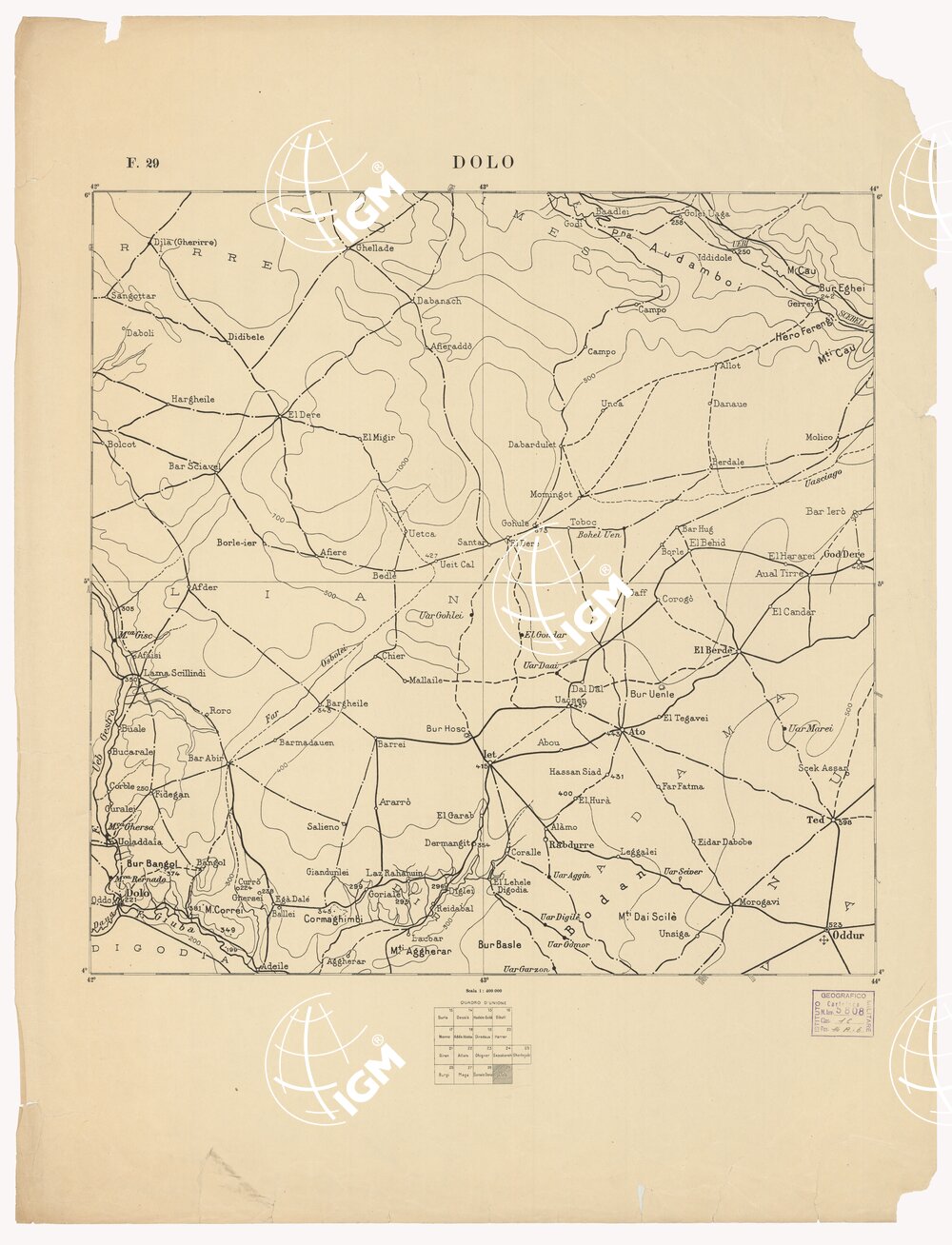 CARTA DELL'AFRICA ORIENTALE ITALIANA – Foglio 29 – Dolo
