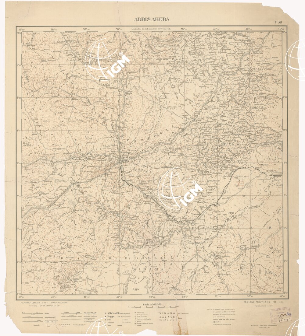 CARTA DELL'AFRICA ORIENTALE ITALIANA IMPERO D´ETIOPIA – Foglio 30 – Addis Abeba