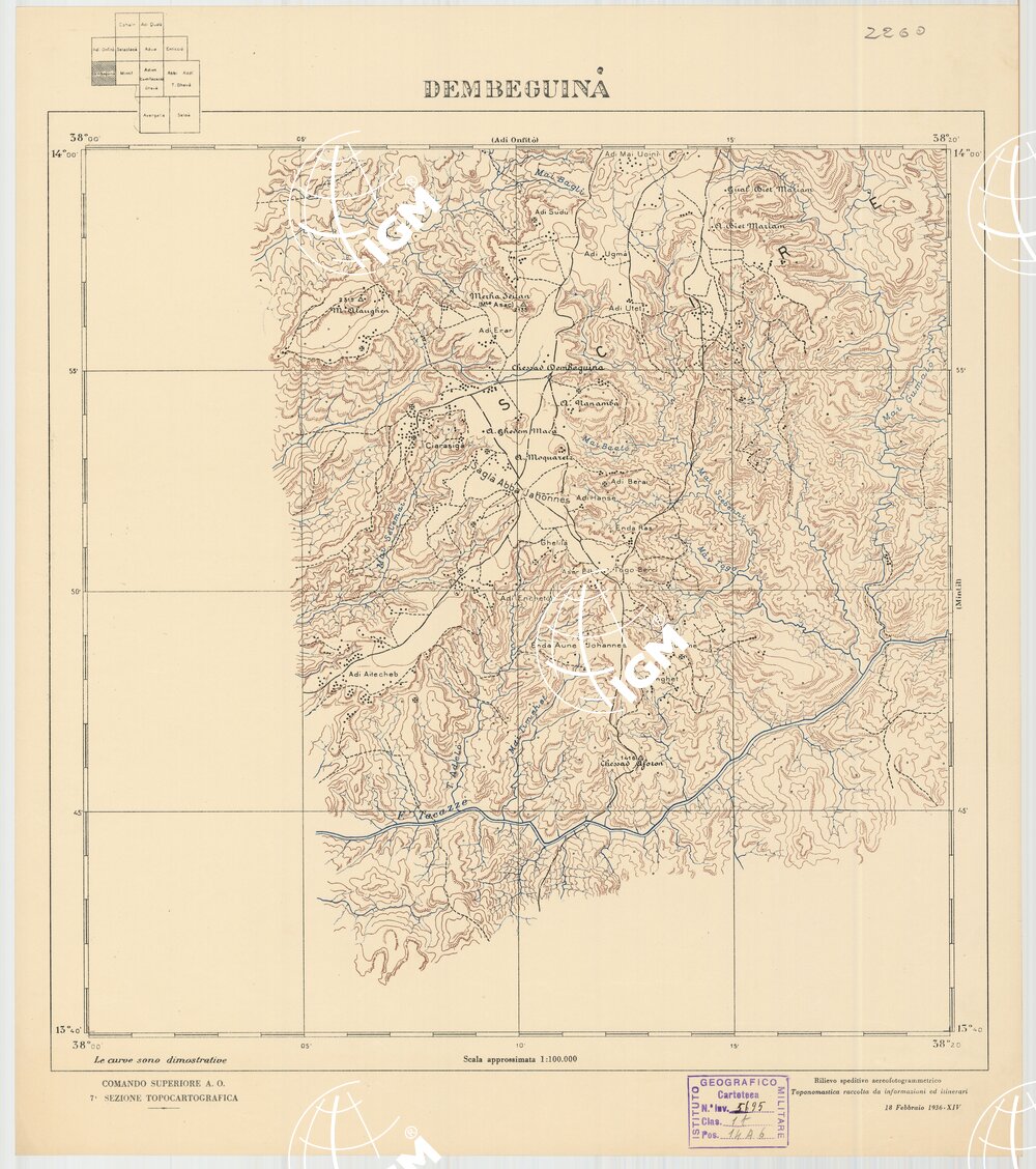 | Titolo proprio | CARTA DELL'AFRICA ORIENTALE ITALIANA – Dembeguinà |