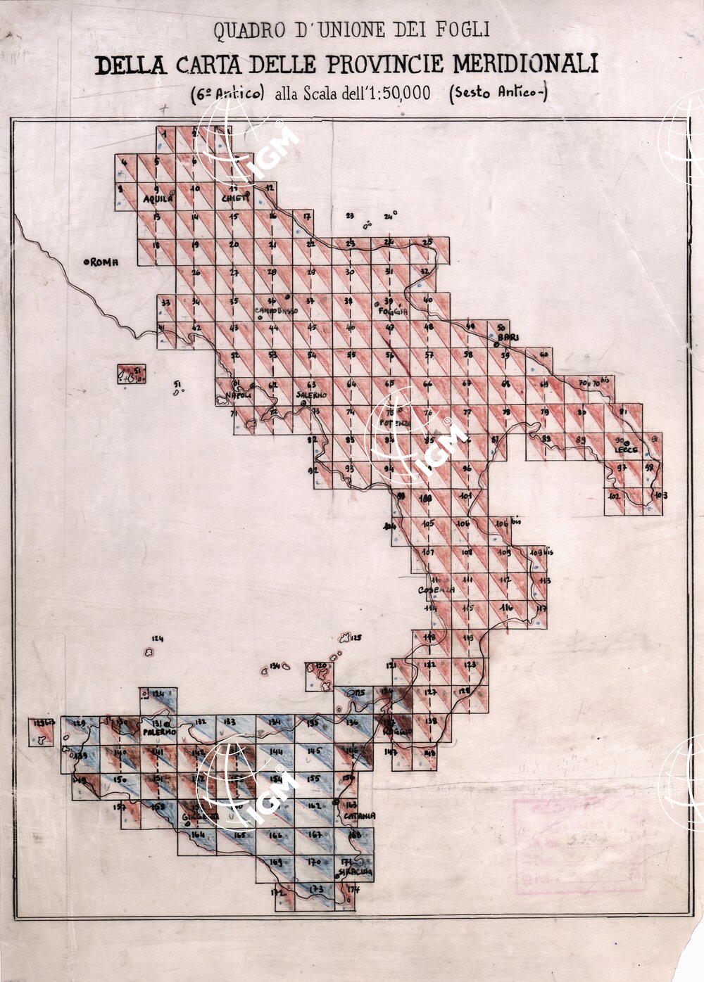 CARTA DELL’ ITALIA MERIDIONALE EDITA DALL’ISTITUTO TOPOGRAFICO MILITARE ITALIANO – Quadro d’Unione