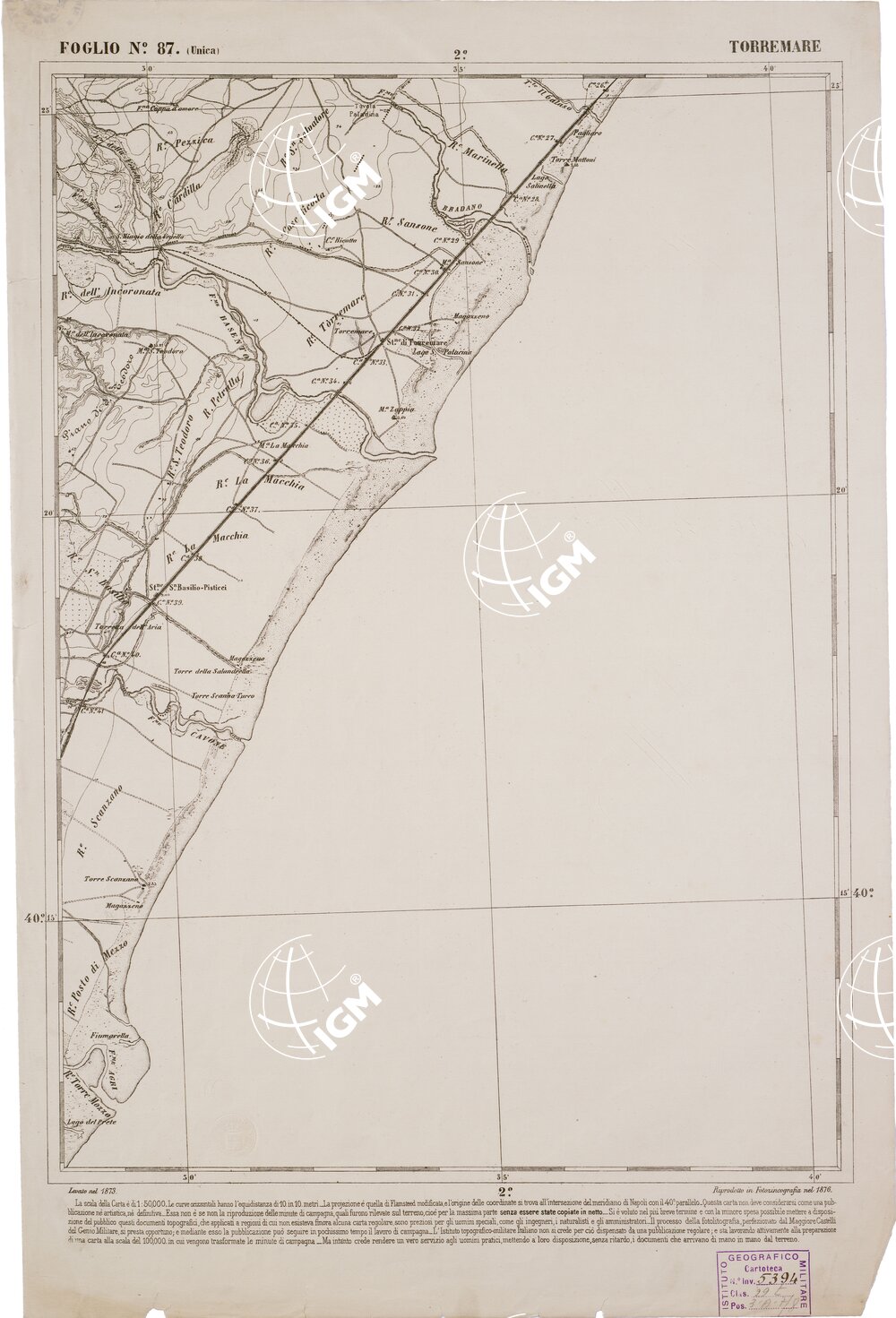 CARTA DELL' ITALIA MERIDIONALE EDITA DALL'ISTITUTO TOPOGRAFICO MILITARE ITALIANO – Foglio 87 – Torremare