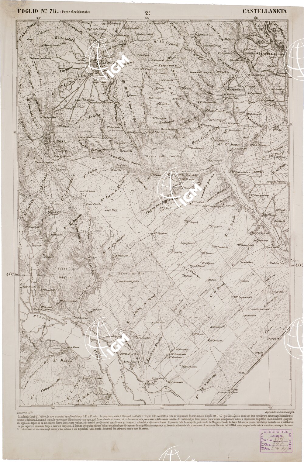 CARTA DELL' ITALIA MERIDIONALE EDITA DALL'ISTITUTO TOPOGRAFICO MILITARE ITALIANO – Foglio 78 parte occidentale – Castellaneta